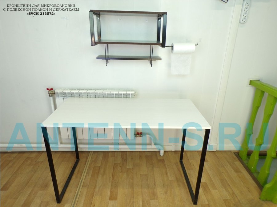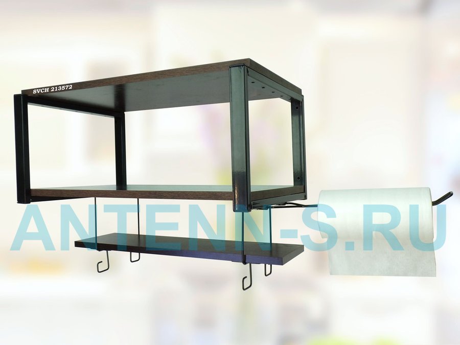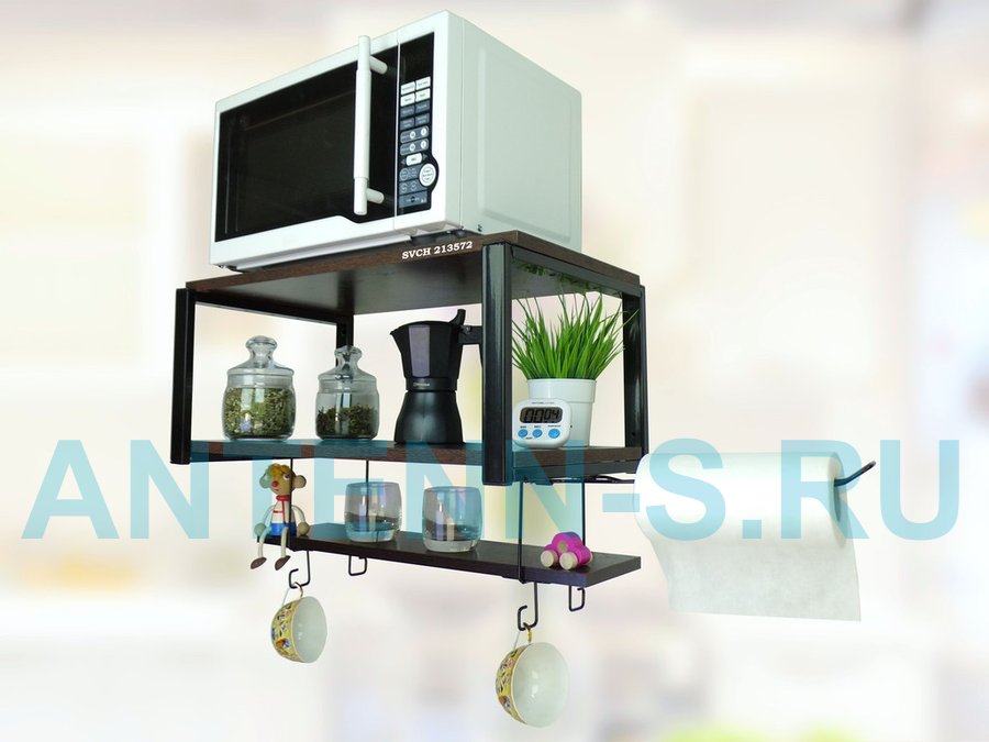 Полка для микроволновки с подвесной полкой, 27см, черный "SVCH 213572" 60х30см, венге, держатель
