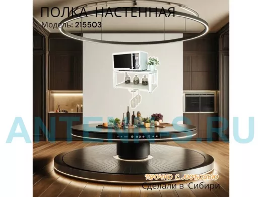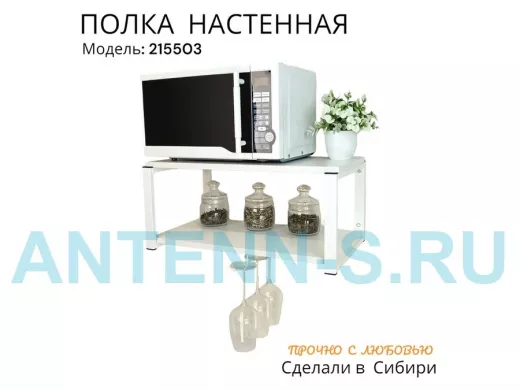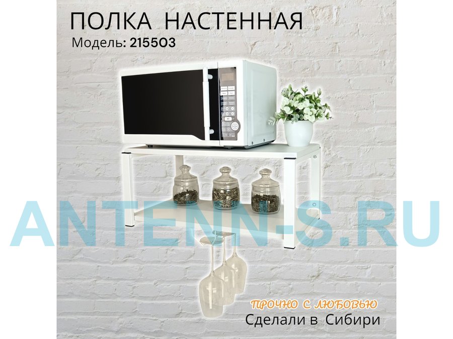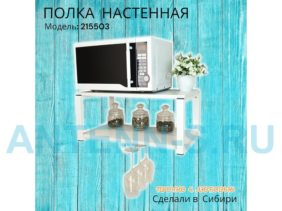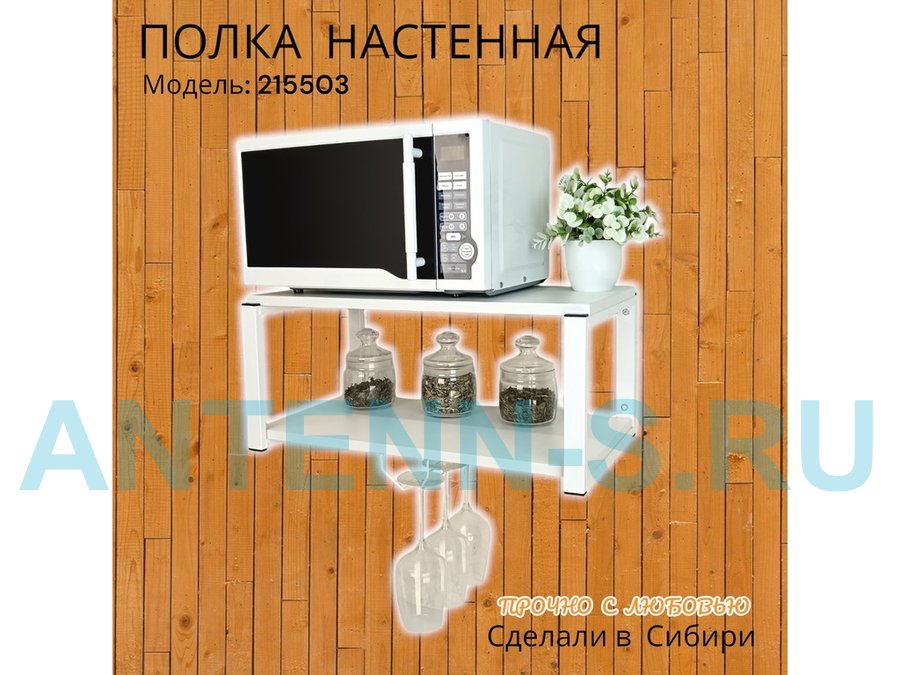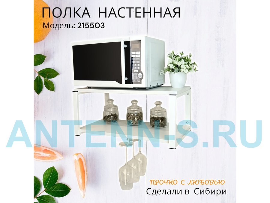 Полка c одним бокалодержателем для микроволновки "SVCH 215503" 60х30см, белая, белый