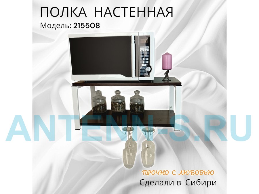 В корзину Купить в 1 клик Полка c двумя бокалодержателем для микроволновки "SVCH 215508" 60х30см, белая, венге