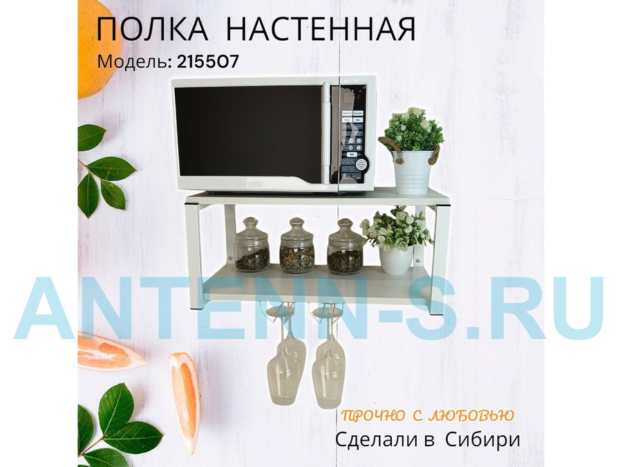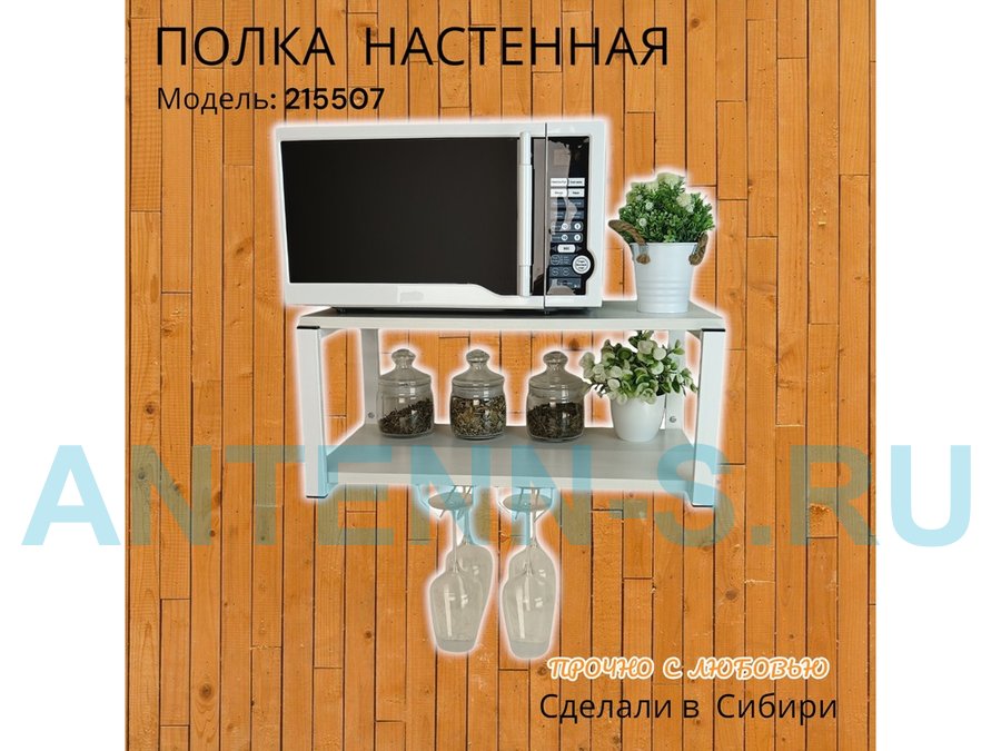 Полка c двумя бокалодержателем для микроволновки "SVCH 215507" 60х30см, белая, сосна выбеленная