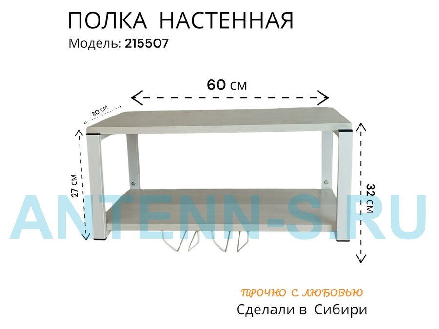 - Размер поверхности полки 30 х 60 см