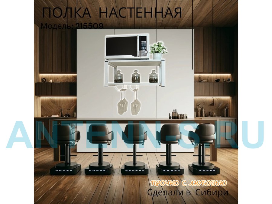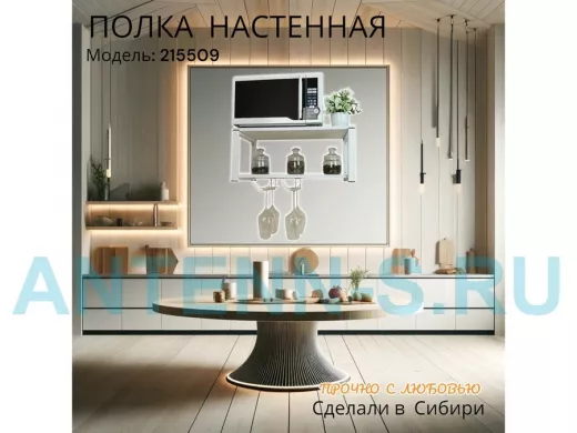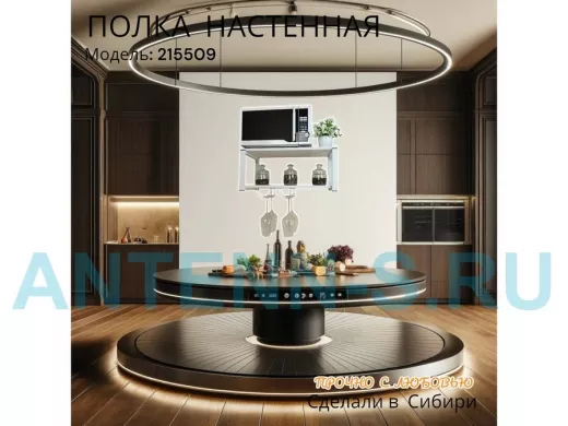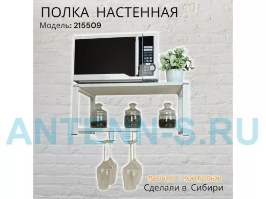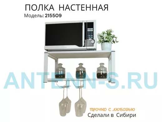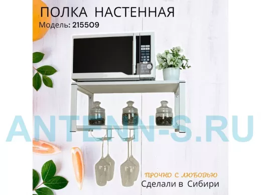 Полка c двумя бокалодержателем для микроволновки "SVCH 215509" 60х30см, белая, белый