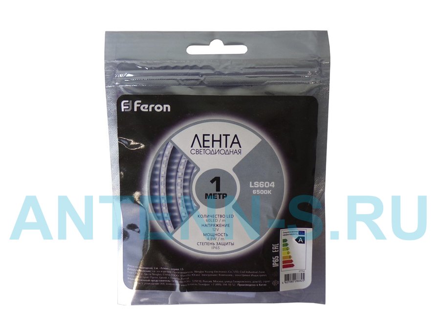 В корзину Купить в 1 клик LED лента 1метр, 60SMD 3528 белая, 12V, 4,8W, <120>, IP65, влагозащ. "Feron"