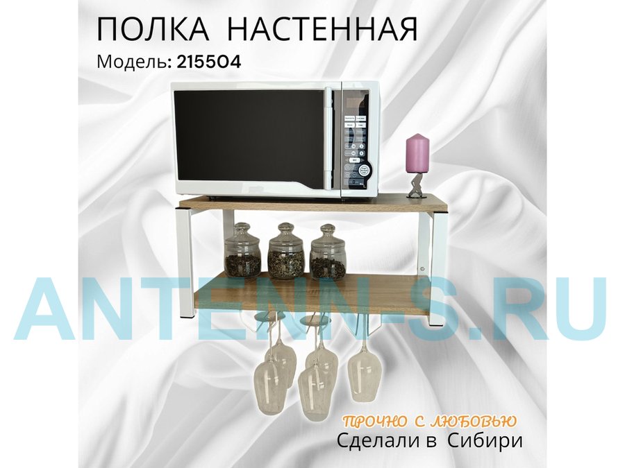 В корзину Купить в 1 клик Полка c тремя бокалодержателями для микроволновки "SVCH 215504" 60х30см, белая, дуб сонома
