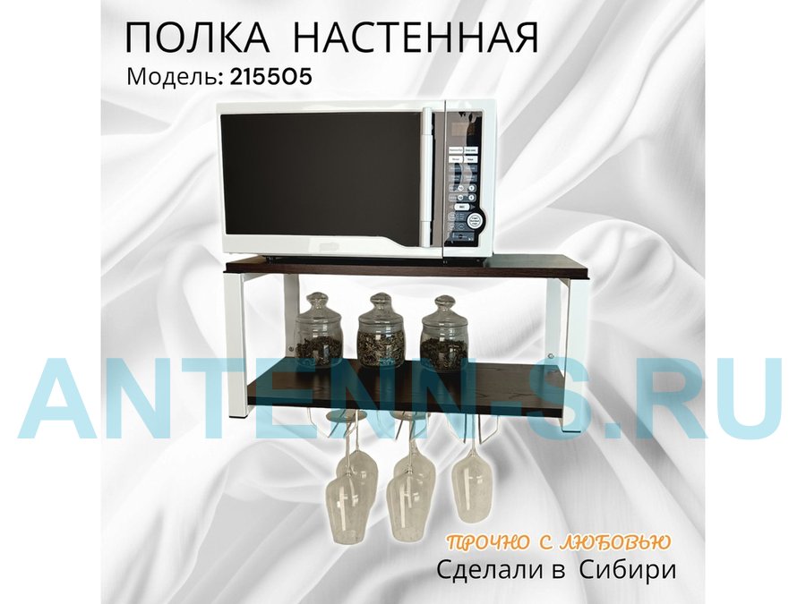 Полки для микроволновок "SVCH" кронштейны для СВЧ печей, высота 27см, 60х30см, 3 бокалодержателя