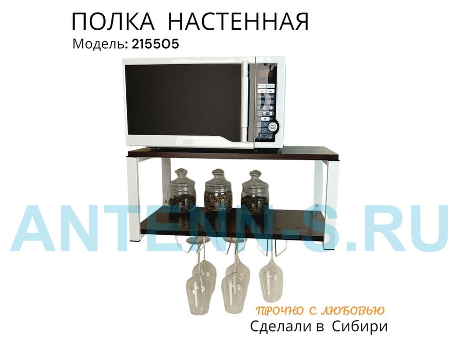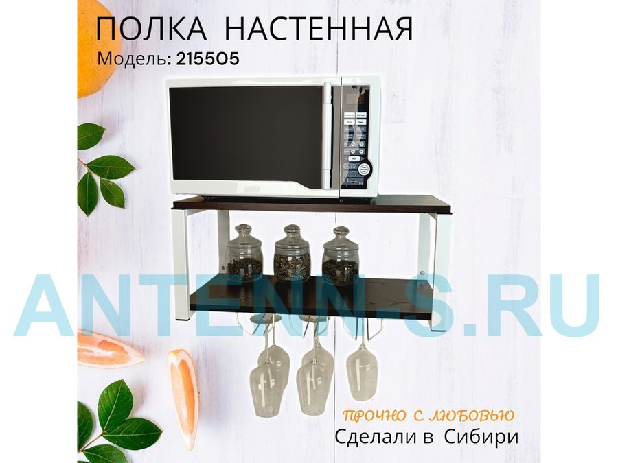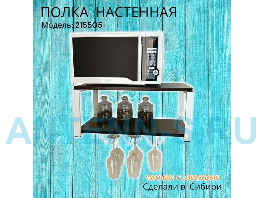 Полка c тремя бокалодержателями для микроволновки "SVCH 215505" 60х30см, белая, венге