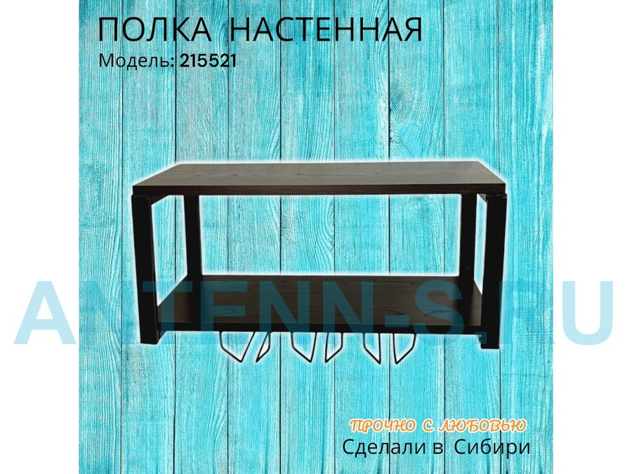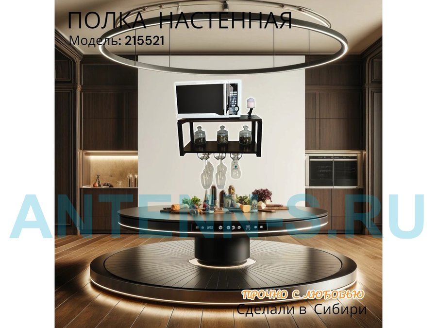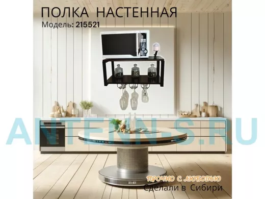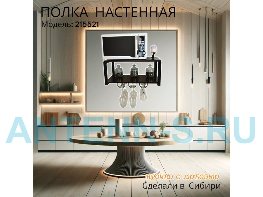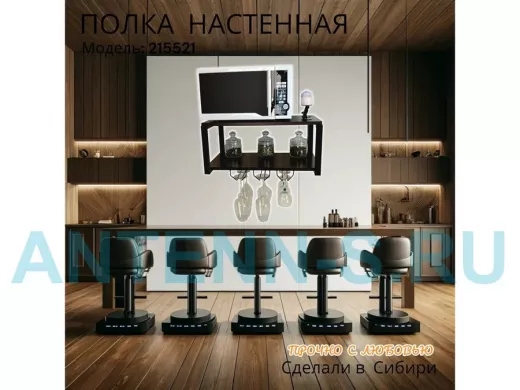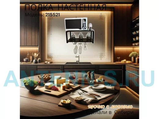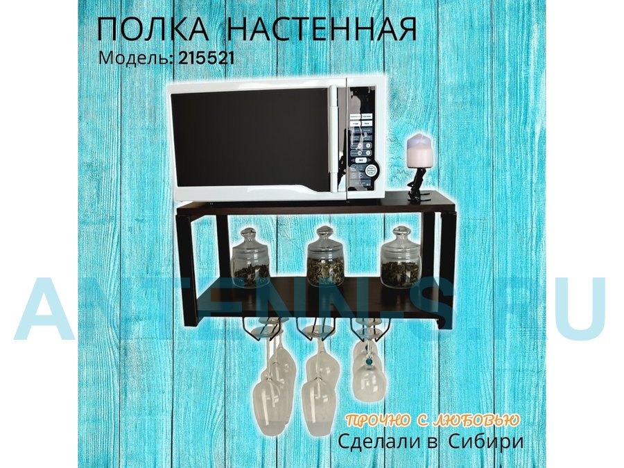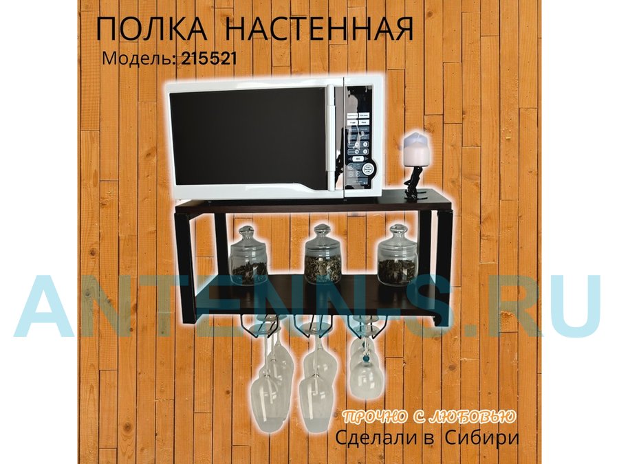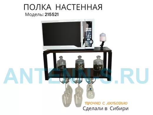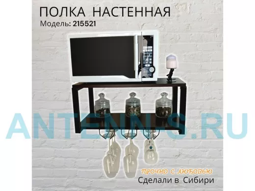 Полка c тремя бокалодержателями для микроволновки "SVCH 215521" 60х30см, черная, венге