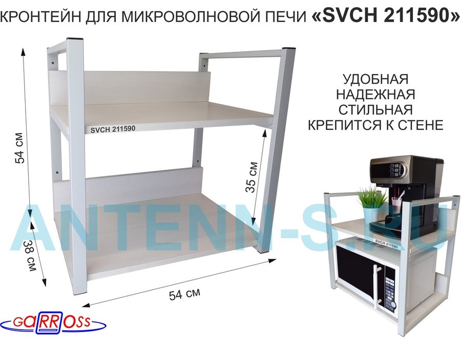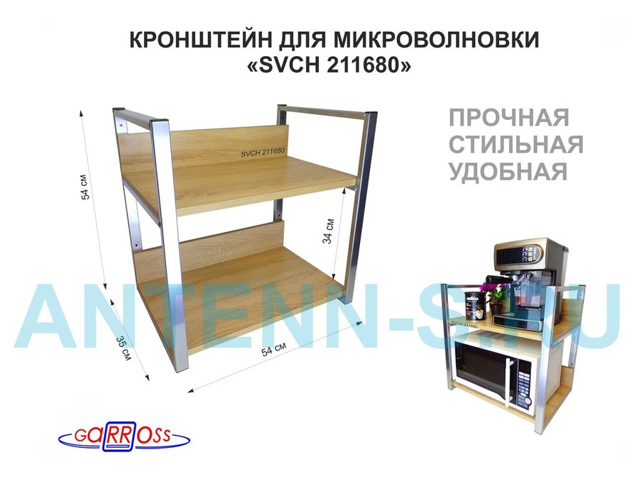 Кронштейн для микроволновки, 54см серый "SVCH 211590" две полки 35х54см со стенками,сосна выбеленная