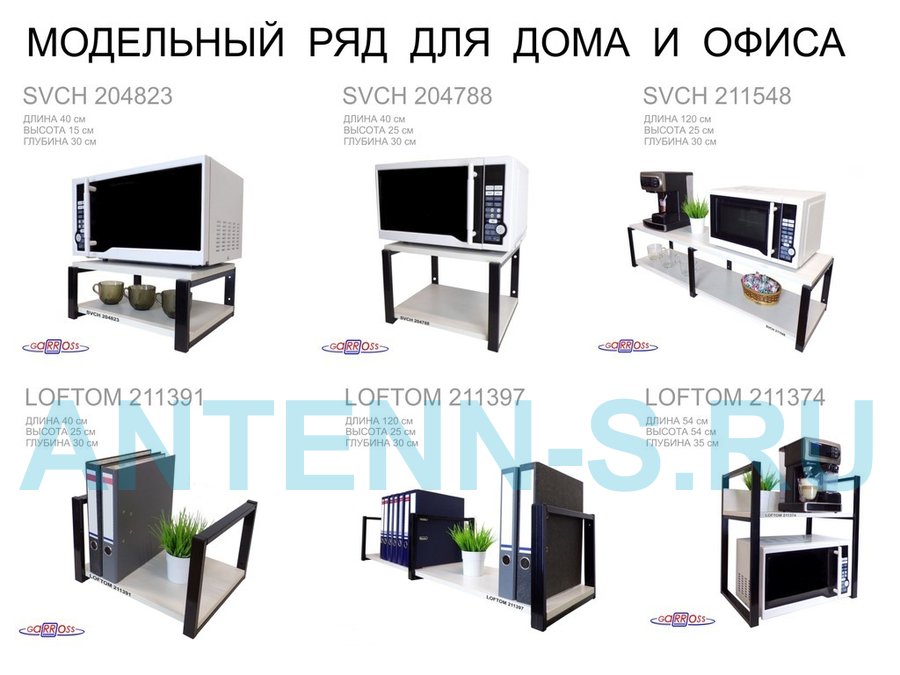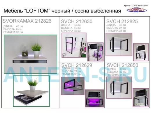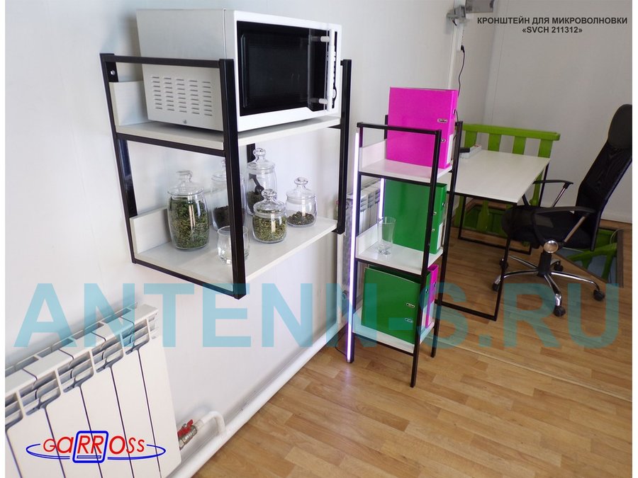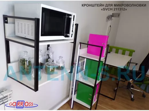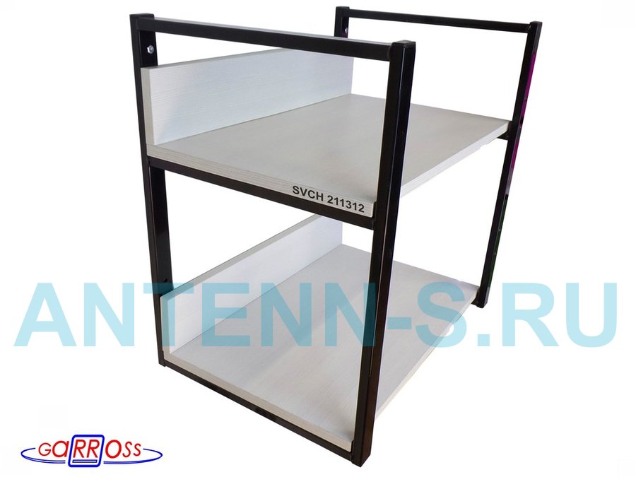 Кронштейн для микроволновки, 54см чёрный "SVCH 211312" две полки 35х54см с бортиком,сосна выбеленная