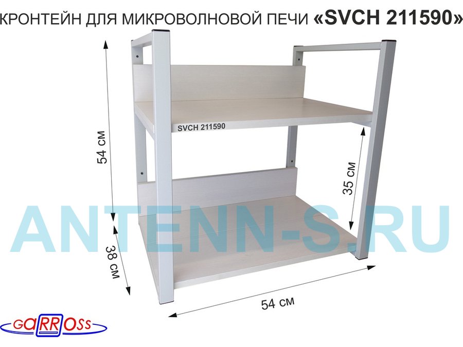 Кронштейн для микроволновки, 54см серый "SVCH 211590" две полки 35х54см со стенками,сосна выбеленная