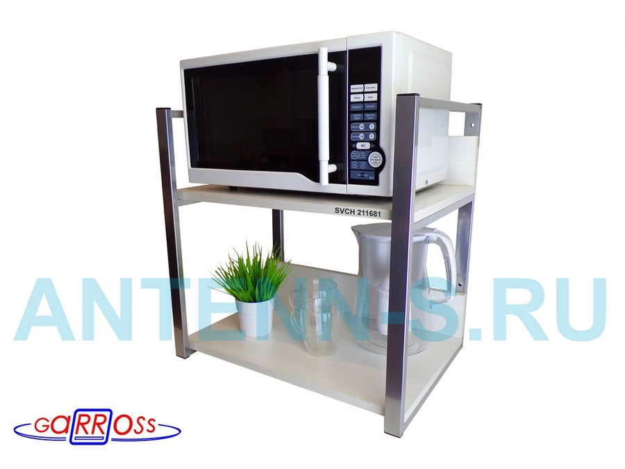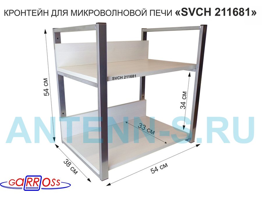 Кронштейн для микроволновки, 54см серебр "ПолкаКрепка-211681" две полки 35х54см со стенками, сосна