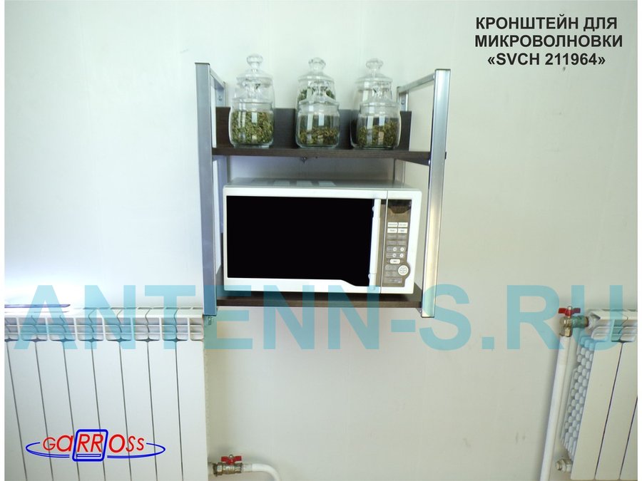 Кронштейн для микроволновки, 54см серебристый "SVCH 211964" две полки 35х54см со стенками, венге