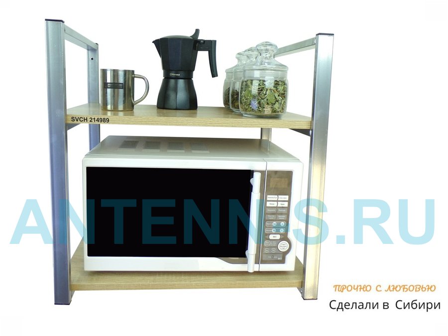 Кронштейн для микроволновки, высота 54 см, серебристый "SVCH 214989" две полки 35х60 см, дуб