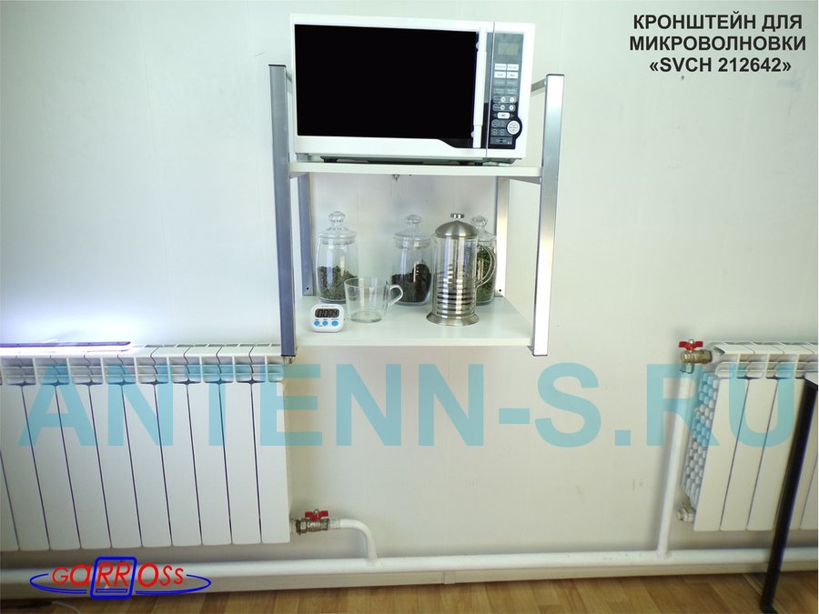 Кронштейн для микроволновки, 54 см, серебристый "SVCH 212642" две полки 35х54 см, сосна выбеленная