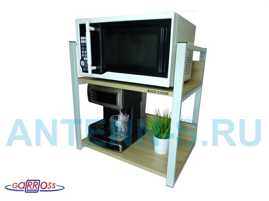 Кронштейн для микроволновки, высота, 54см серый "SVCH 213258" две полки 35х60см со стенками, дуб