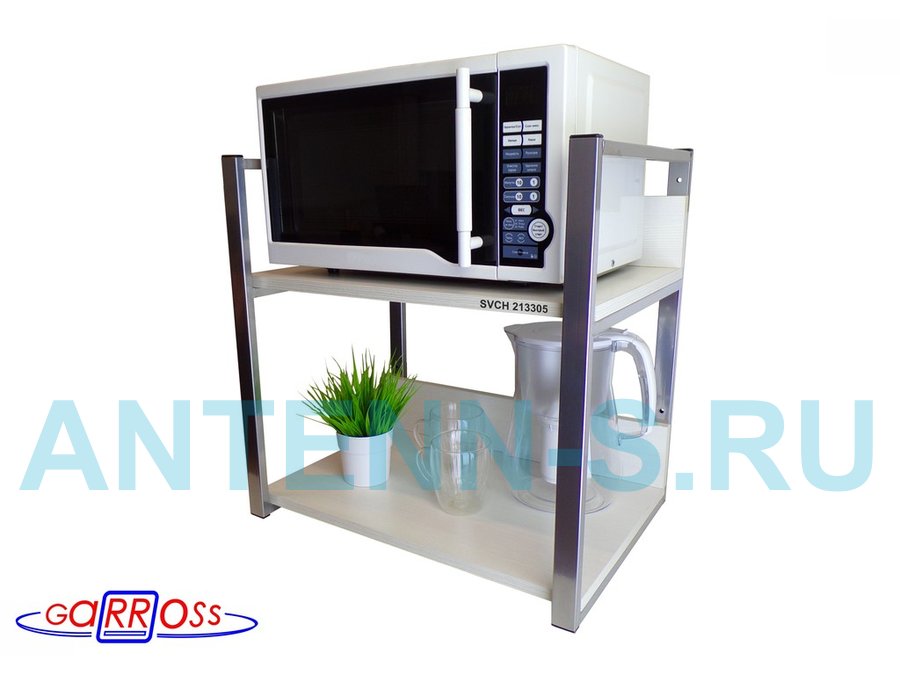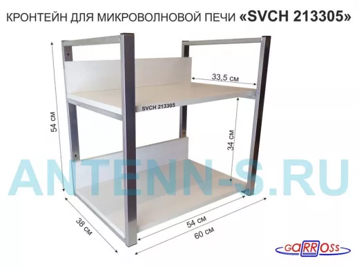 Кронштейн для микроволновки, высота, 54см серебр "SVCH 213305" две полки 35х60см со стенками, сосна