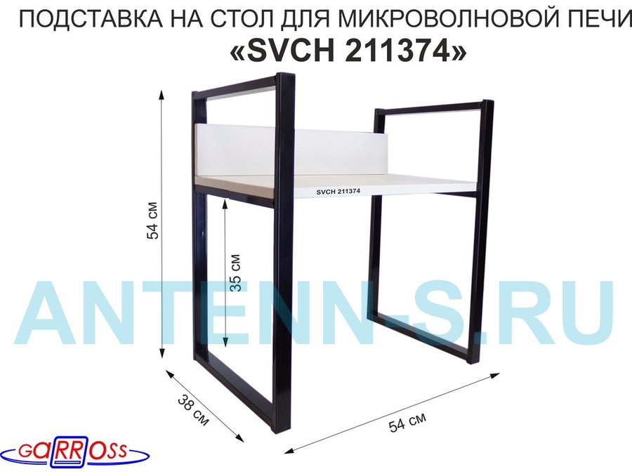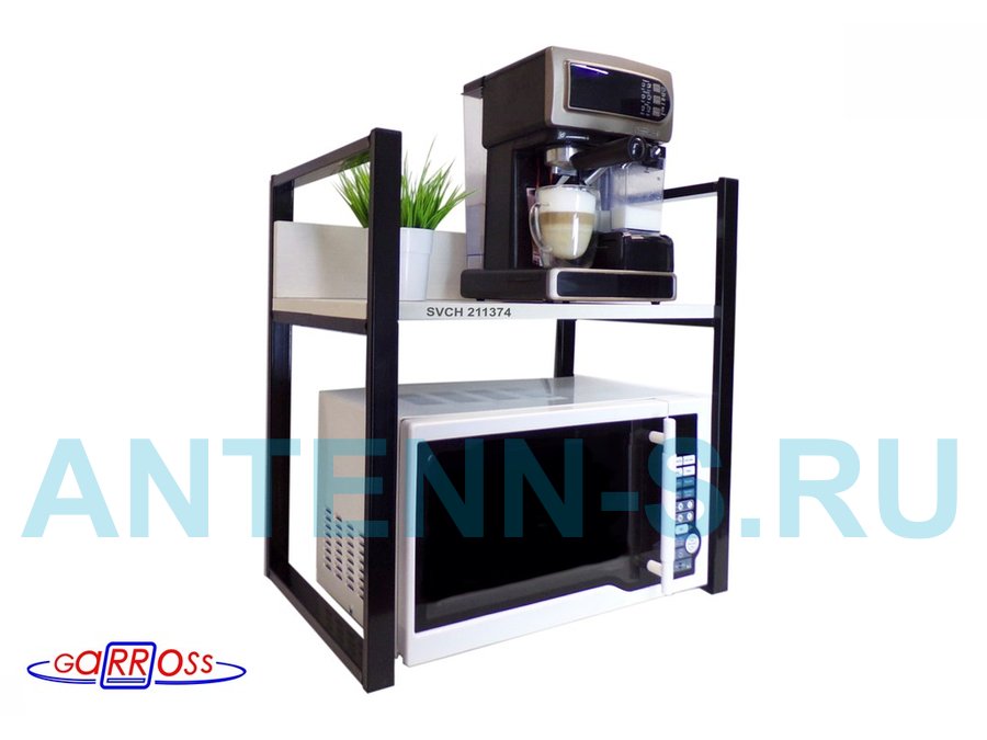 Подставка, полка на стол для микроволновой печи, высота 54см чёрный "SVCH 211374" полка 35х54, сосна