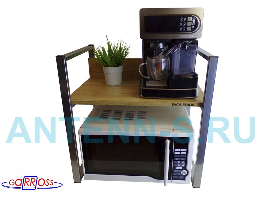 Универсальная подставка для бытовой техники (микровоновой печи, кофемашины, тостера, электрического чайника и др) позволяет эффективно использовать место на столе.