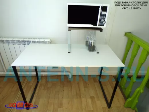 Универсальная подставка для микроволновой печи позволяет эффективно использовать место на столе.