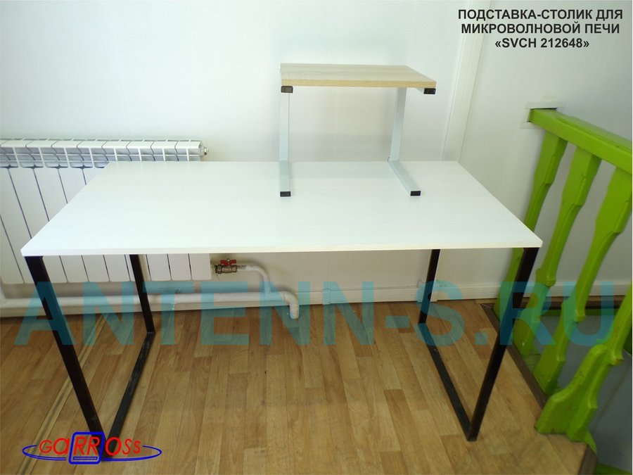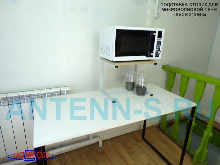 Универсальная подставка для микроволновой печи позволяет эффективно использовать место на столе.