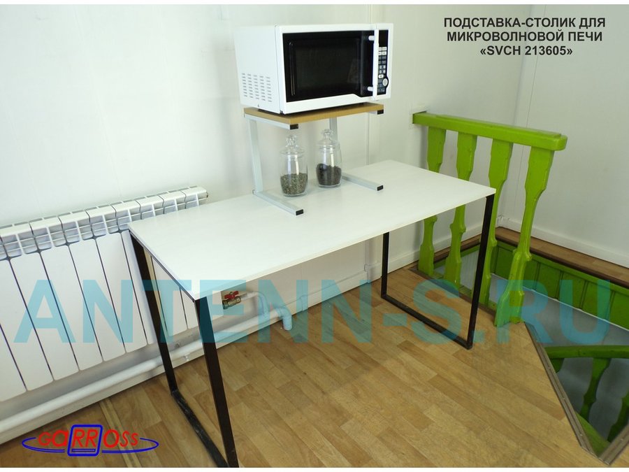 Универсальная подставка для микроволновой печи позволяет эффективно использовать место на столе.
