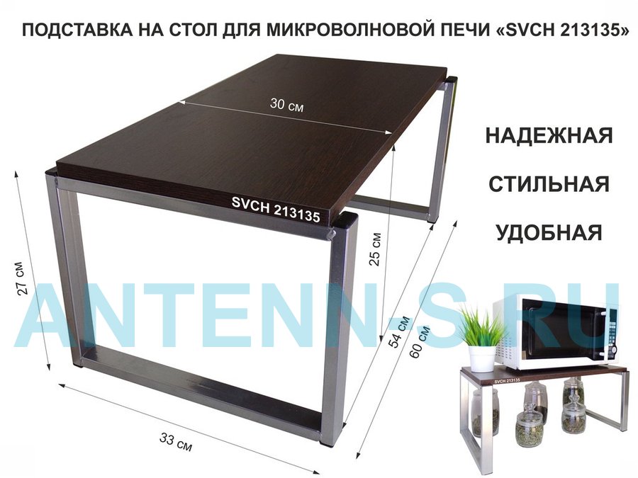 Подставка на стол для микроволновой печи, высота 27см, серебр "SVCH 213135" полка 60х30см, венге