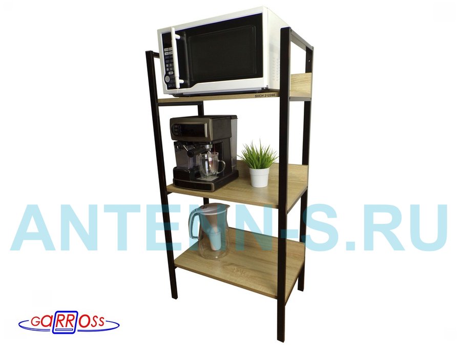 Подставка для микроволновой печи, высота 119см, черный "SVCH 212288" три полки 60х30см, дуб сонома