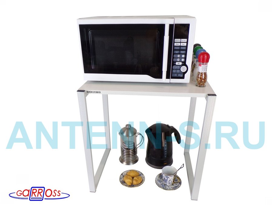 Подставка для микроволновки, серый, высота 55см "SVCH 213015" столешня 54х35 см, сосна выбеленная