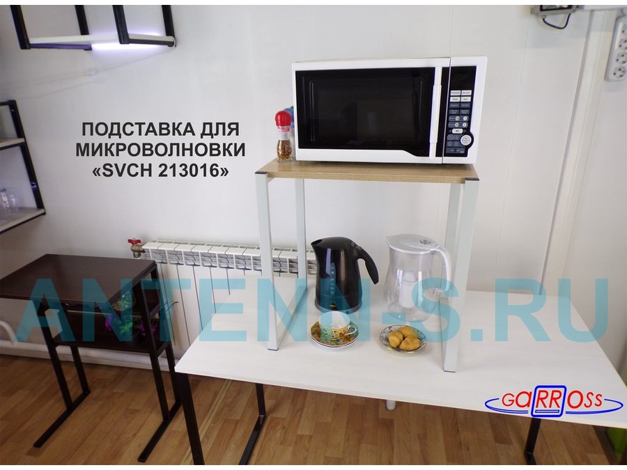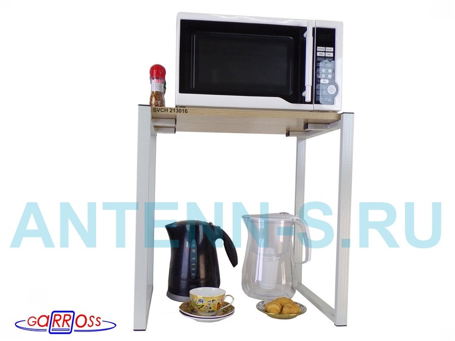 - Универсальная подставка для бытовой техники (микровоновой печи, кофемашины, тостера, электрического чайника и др) позволяет эффективно использовать место на столе.
