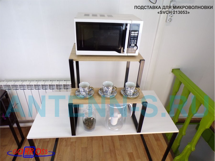 Подставка для микроволновки, черный, 55см "SVCH 213053" с двумя уровнями 55 и 31 см, дуб сонома