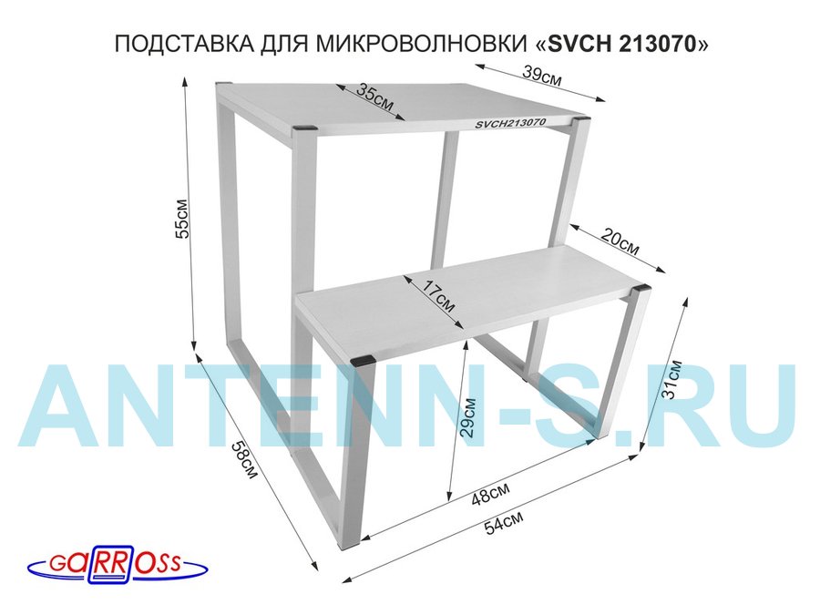 Подставка для микроволновки, серый, 55см "SVCH 213070" с двумя уровнями 55 и 31 см,сосна выбеленная