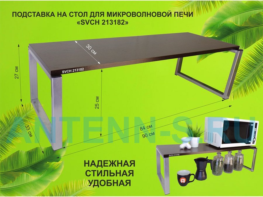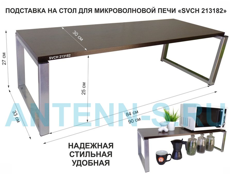 Подставка на стол для микроволновой печи, высота 27см, сереб "SVCH 213182" полка 90х30см, венге