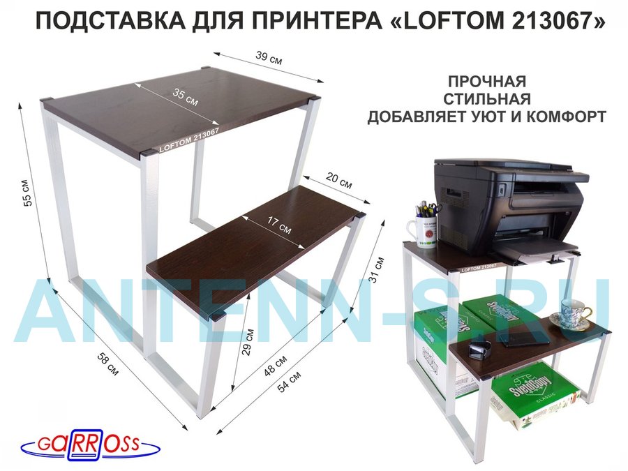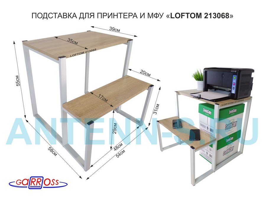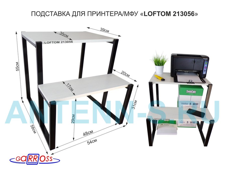 . Подставка под принтер и оргтехнику "LOFTOM" высота 55см и 31см, 54х35см, 2 уровня