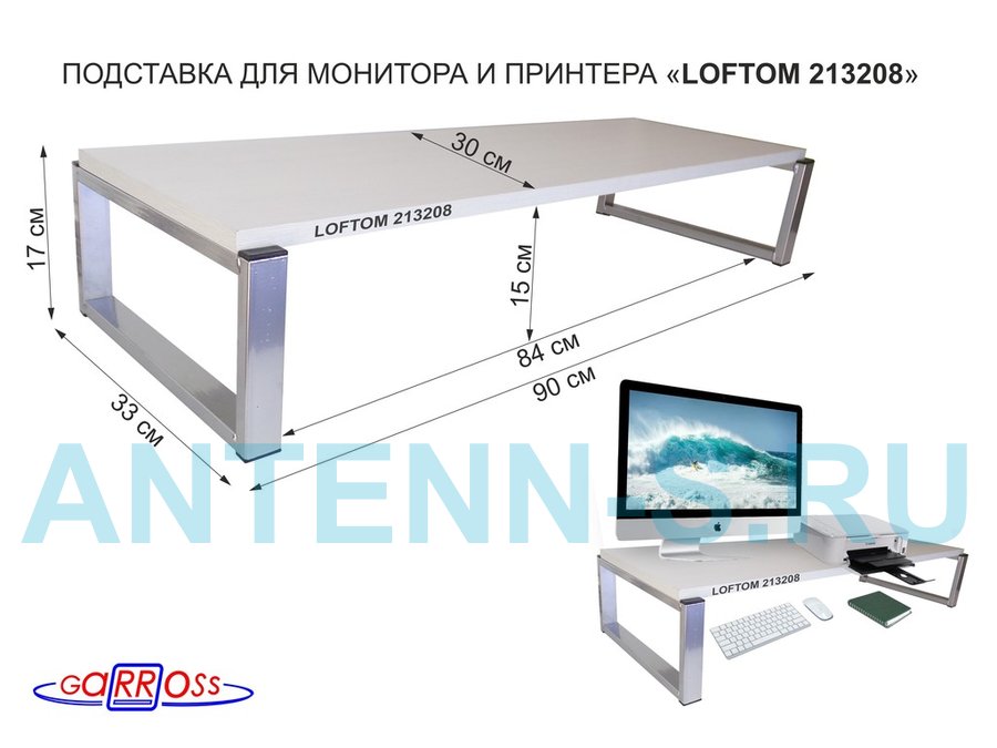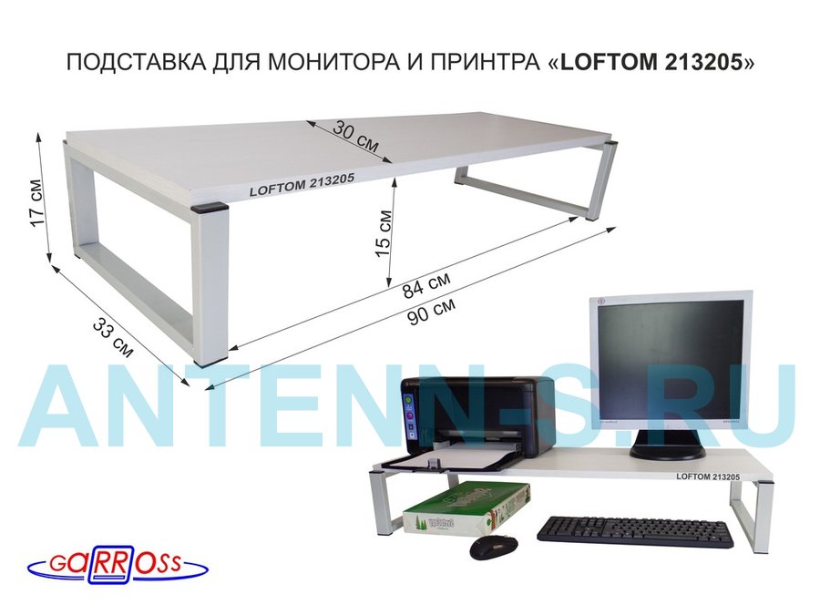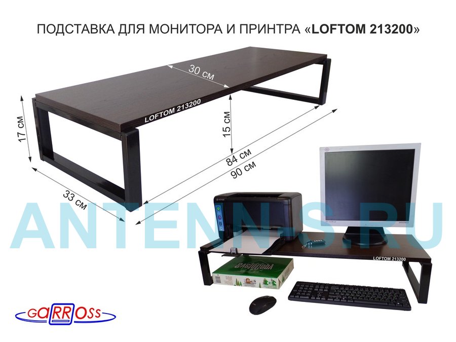 Подставка для монитора и принтера, высота 17см, черный "LOFTOM 213203" полка 90х30см, сосна выбелен.