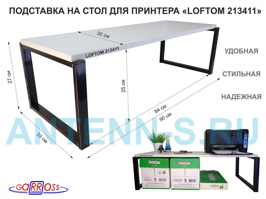 . Подставка под принтер и оргтехнику "LOFTOM" высота 27см, 90х30см, 1 уровень