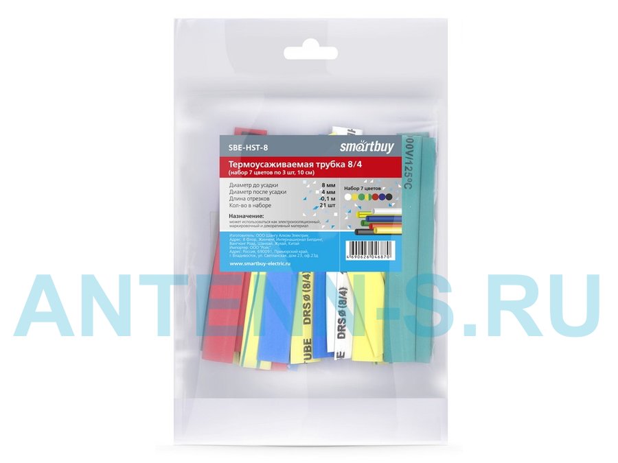 В корзину Купить в 1 клик Термоусаживаемая трубка 8/4 набор (7 цветов по 3 шт, 10 см) (SBE-HST-8)