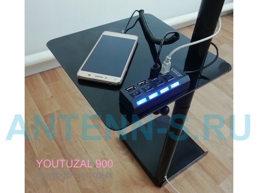 "YOUTUZAL 900B" чёрный держатель телефона для просмотра фильмов в кровати, столик с 4хUSB, зарядка