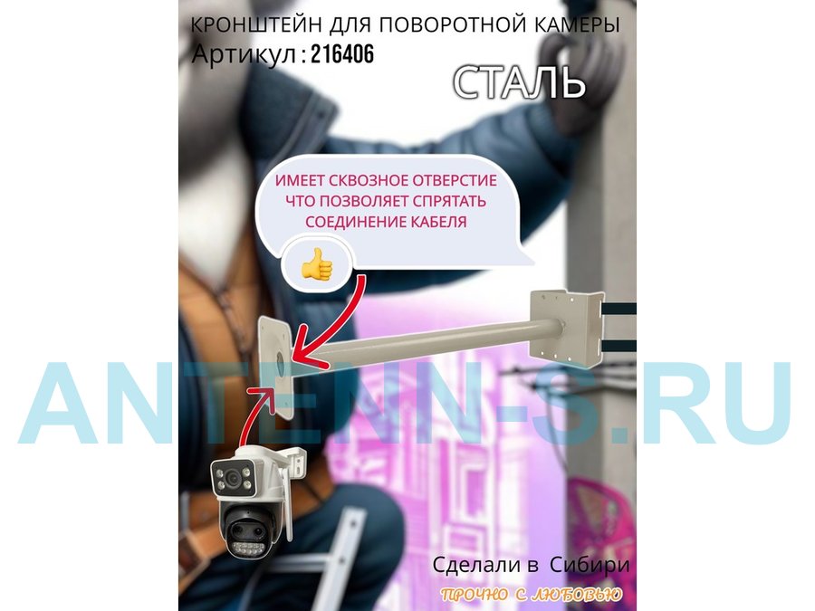 В корзину Купить в 1 клик Кронштейн на столб для крепления гермобокса с видеокамерой, вылет 50 см "HIWOLL-216406" серый, сталь