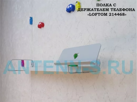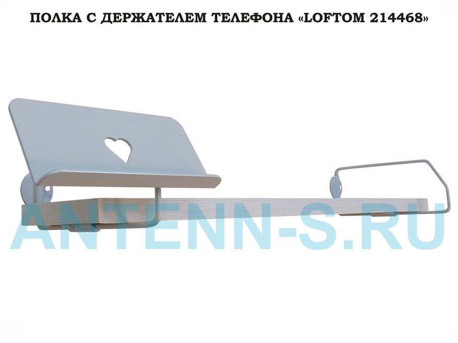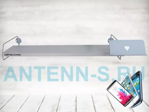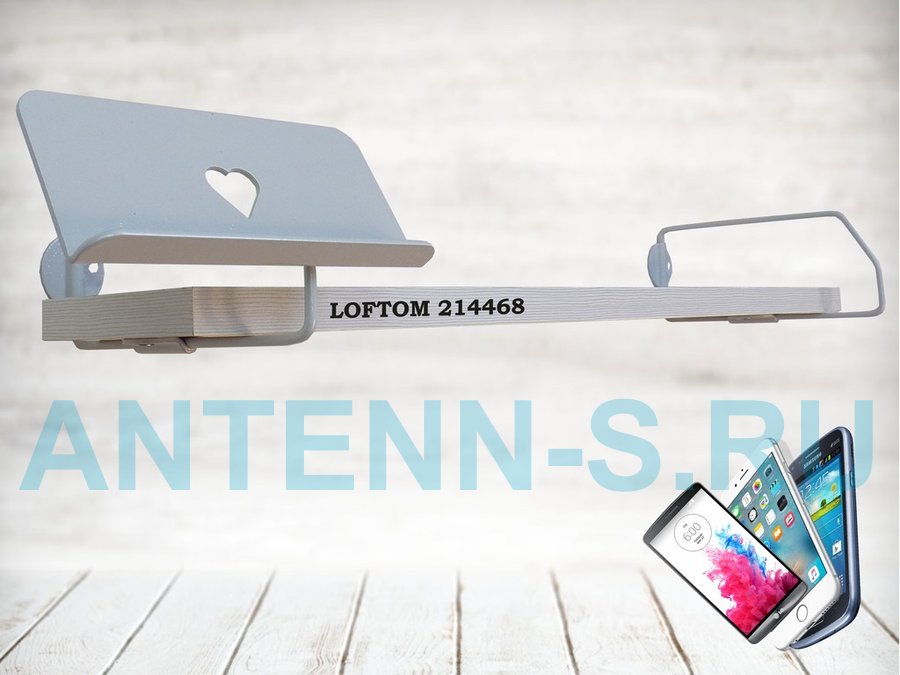 Полка с держателем телефона, серый "LOFTOM 214468" полка 54х10 см, сосна выбеленная