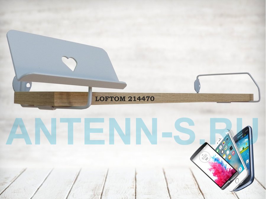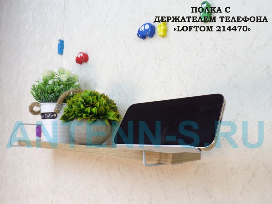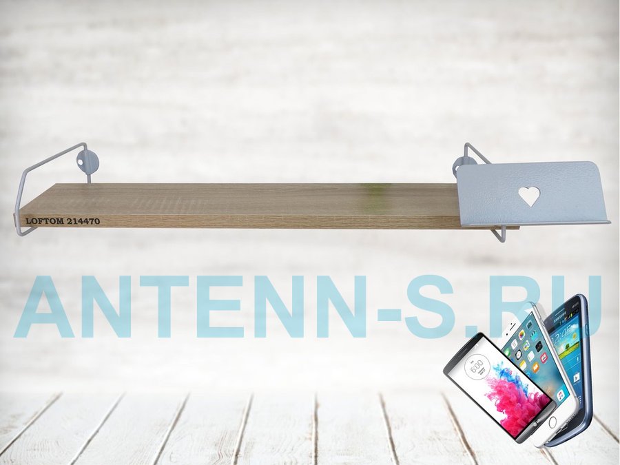 Полка с держателем телефона, серый "LOFTOM 214470" полка 54х10 см, дуб сонома