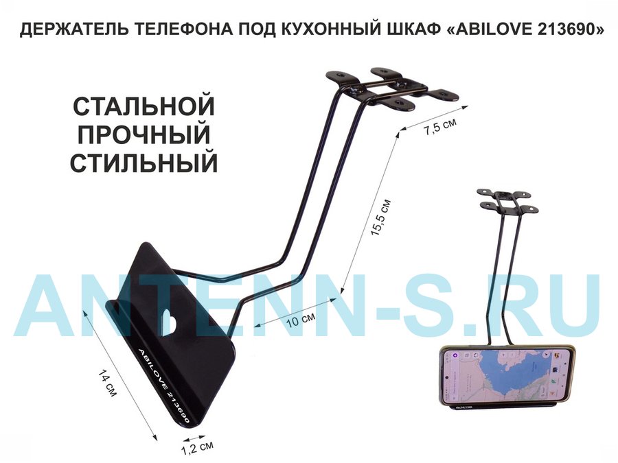 В корзину Купить в 1 клик Стальной прочный держатель телефона 13,5х6 см под кухонный шкаф "ABILOVE 213690" цвет черный