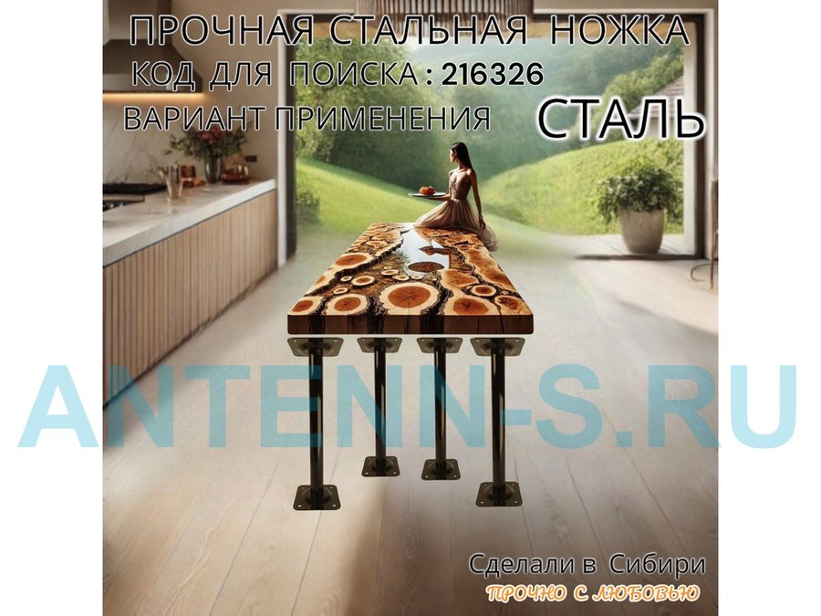 . Для столов. Ножки круглые диаметром 32мм "LOFTOM". С двумя креплениями.
