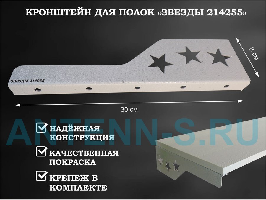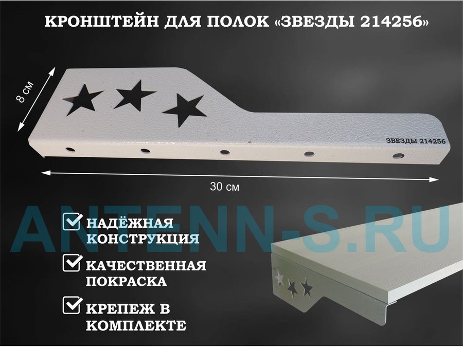 В корзину Купить в 1 клик Кронштейн "ЗВЁЗДЫ 214255" для полок, правый 30x8 см , 7 отверстий 7 мм, серый