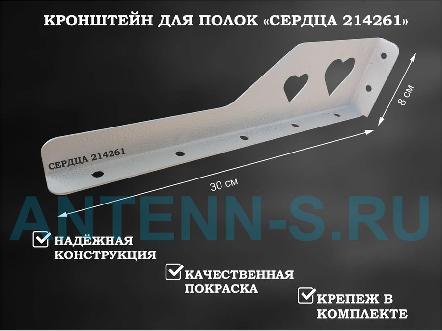 В корзину Купить в 1 клик Кронштейн "СЕРДЦА 214231" для полок, правый 30x8 см , 7 отверстий 7 мм, серый