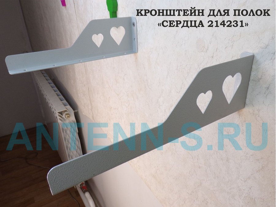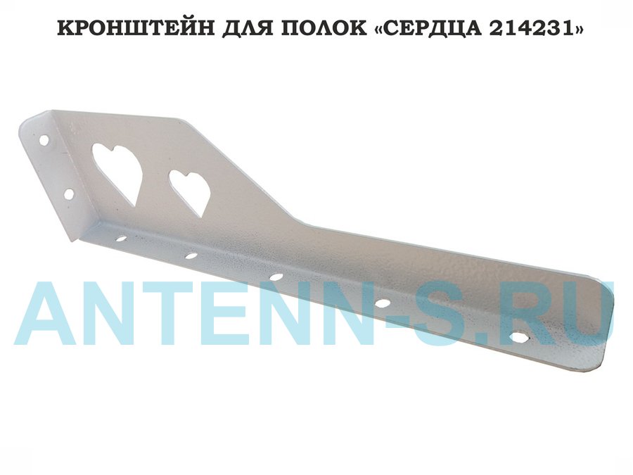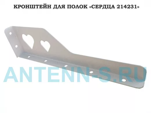 Кронштейн "СЕРДЦА 214231" для полок, правый 30x8 см , 7 отверстий 7 мм, серый