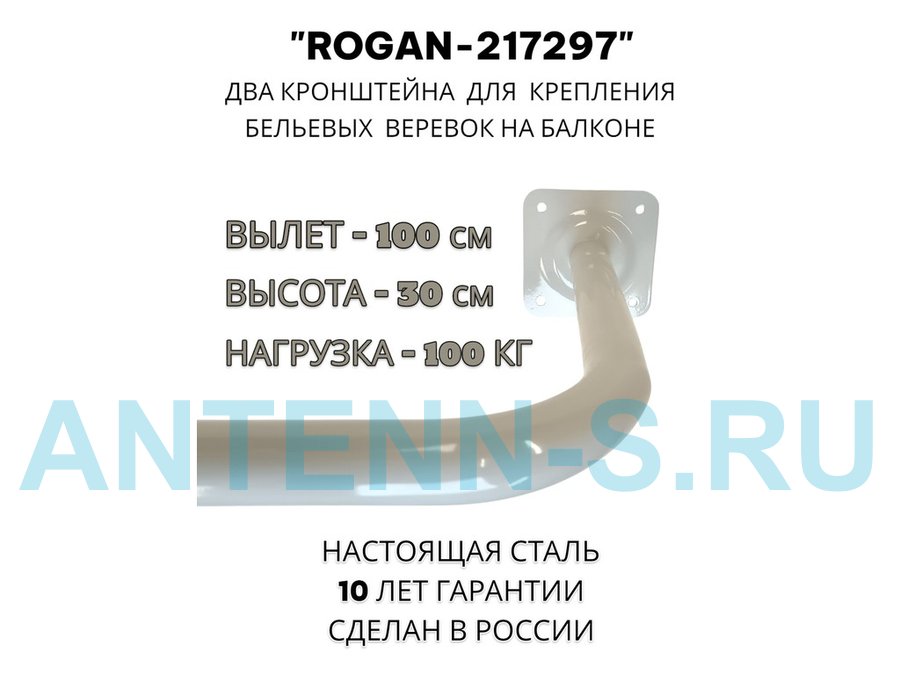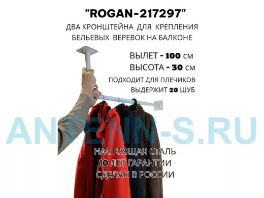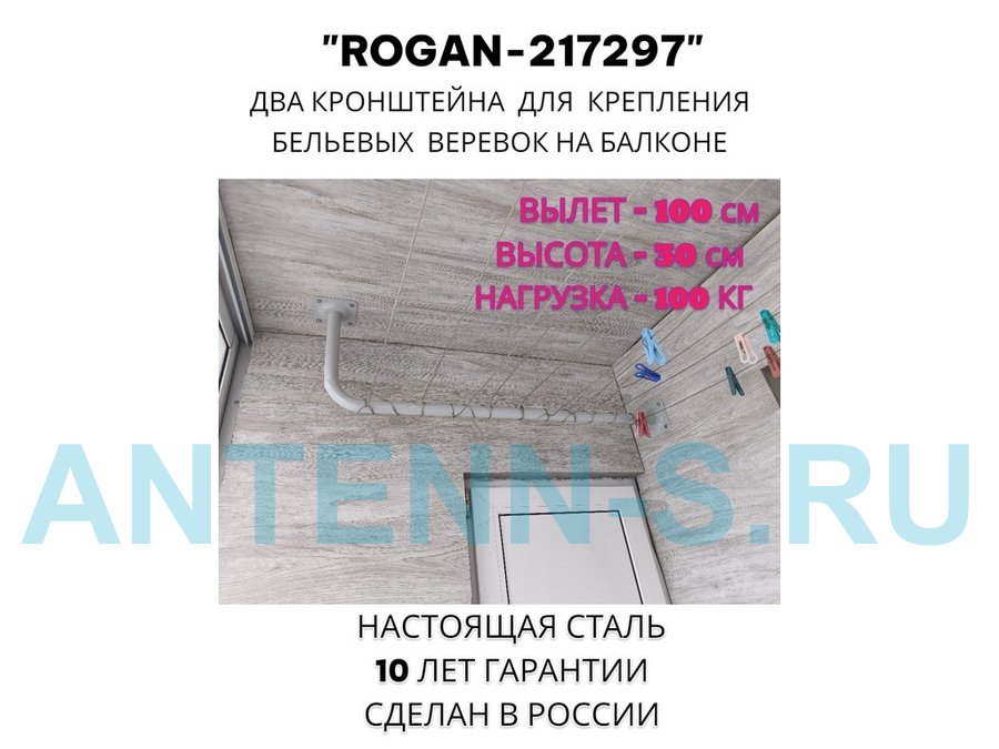 Сушилка для белья под веревки, 2 кронштейна, длина 100см, вылет 30см "ROGAN-217297" серый, 32мм