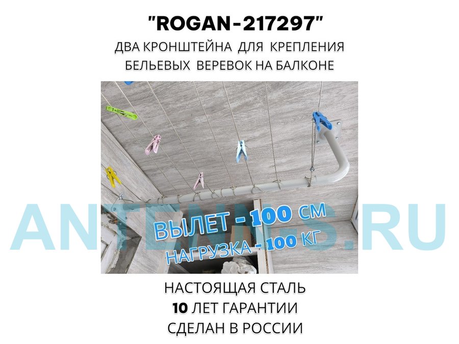 - Длинна кронштейна позволяет протянуть необходимое количество бельевой веревки, для увеличения площади сушки вещей.