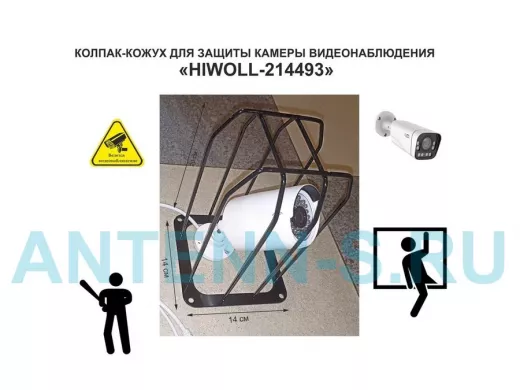 Колпак кожух для камеры видеонаблюдения, основание 14х14х20см,скосы "HIWOLL-214493"вылет 20см,чёрный