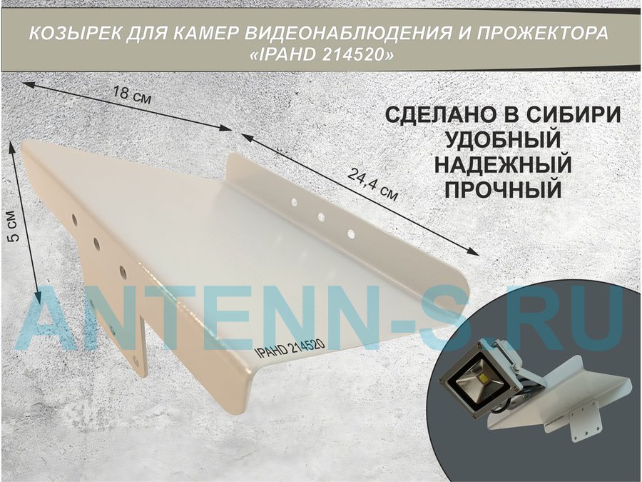 В корзину Купить в 1 клик Козырёк для камер видеонаблюдения и прожектора, белый "IPAHD-215613", сталь 2мм, вылет 18х24,4см