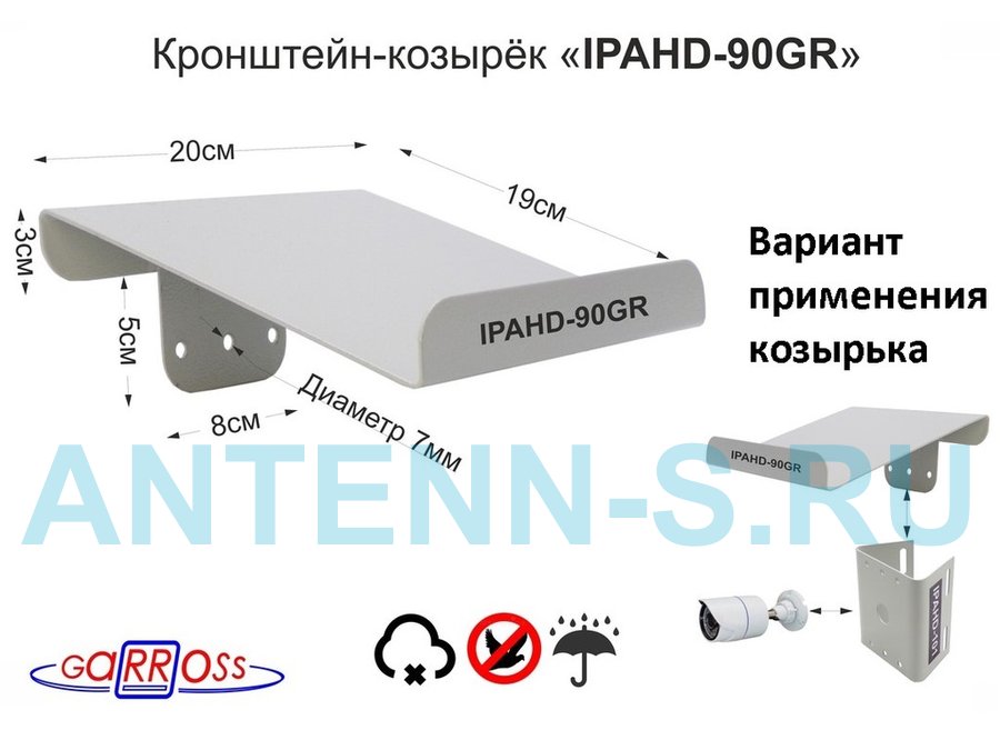 Козырёк для камер видеонаблюдения "IPAHD-91GR-216850" серый для кронштейнов IPAHD, сталь 2мм,19х20см